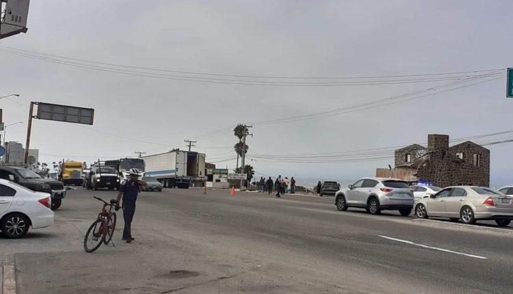 Playas de Rosarito, 13 de julio de 2022.- Un tráiler cargado de mercancía volcó la noche de este martes 12 de julio del 2022 en el entronque del bulevar 2000 y Popotla causando el cierre de circulación.