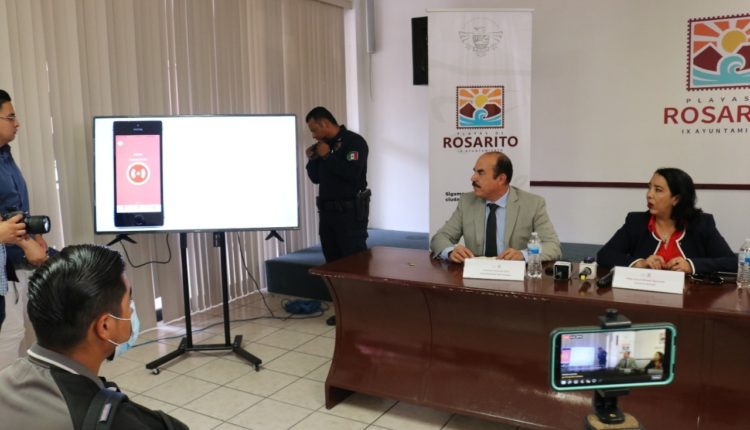 Playas de Rosarito, 11 de julio de 2022.- El “Botón de Alerta” de la aplicación digital SOS_RR ya está disponible para atención a emergencias, en apoyo a familias residentes y turistas y fue hoy presentado por la Presidente Municipal, Araceli Brown Figueredo.