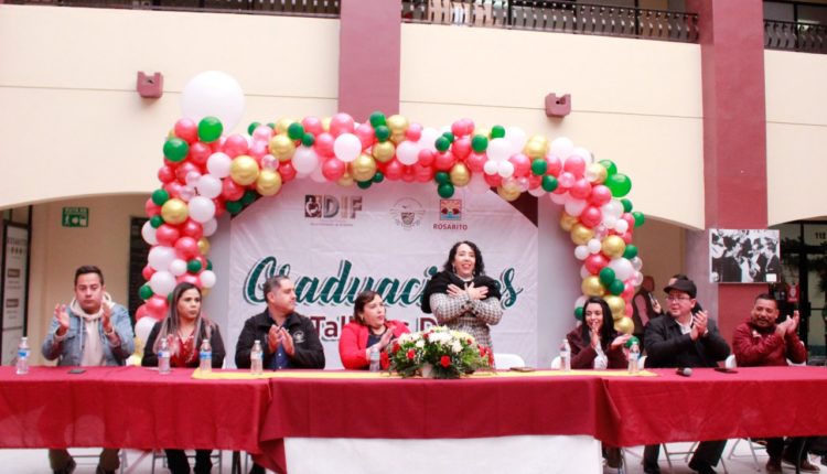 Playas de Rosarito, 8 de diciembre de 2022.- Este día se graduaron 241 personas participantes en los diversos talleres ofertados por parte del Sistema Municipal para el Desarrollo Integral de la Familia (DIF) de Playas de Rosarito y la Presidente Municipal, Araceli Brown Figueredo, encabezó la ceremonia.