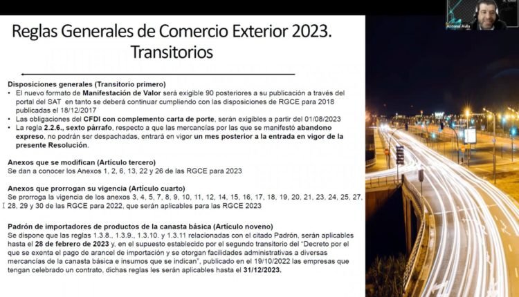 Entre los temas expuestos desglosó las reglas generales de comercio exterior, sus disposiciones generales, anexos que se modifican, anexos que prorrogan su vigencia y el padrón de importadores de productos de la canasta básica.