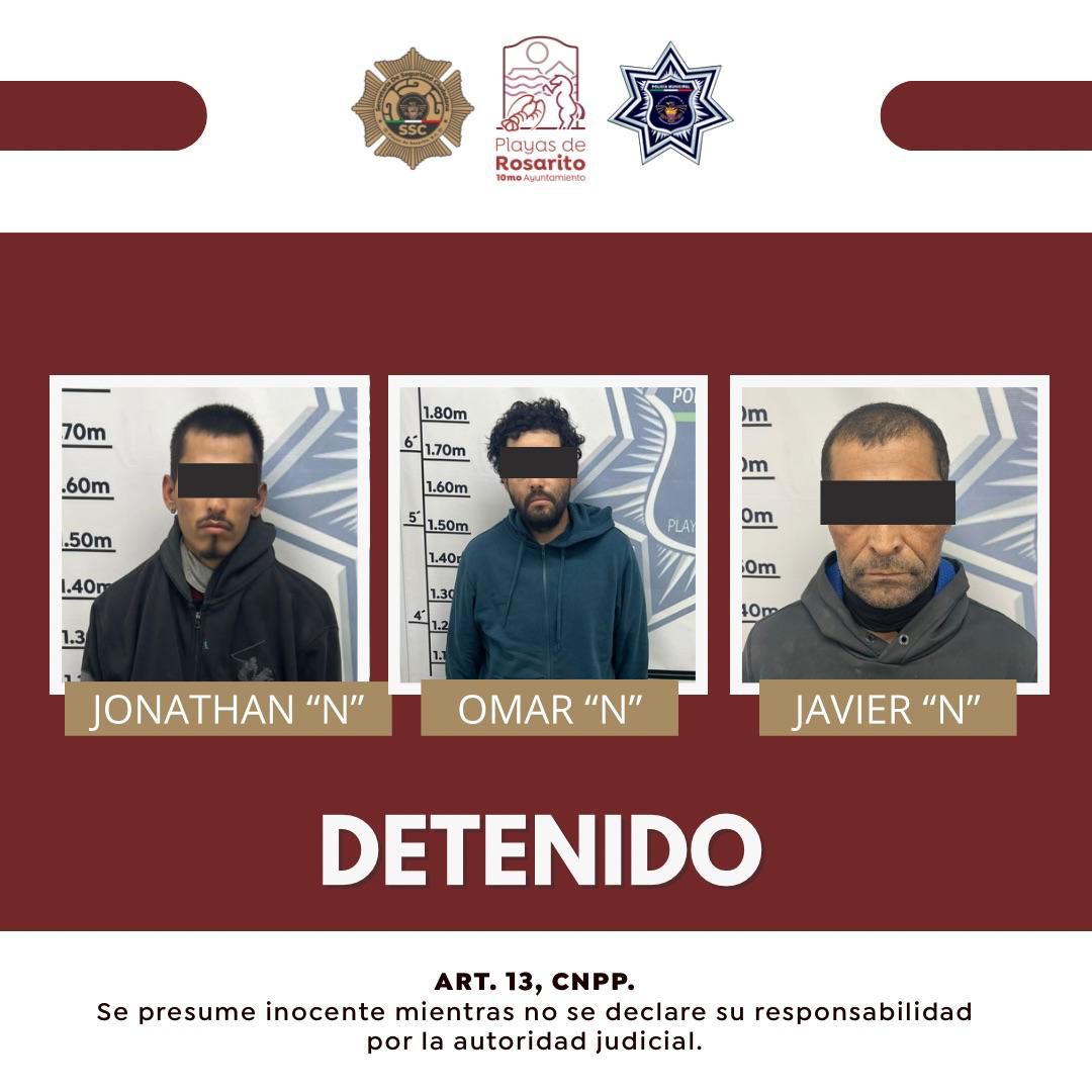 Por estos hechos, los oficiales procedieron a la detención de los tres hombres, quienes fueron puestos a disposición de las autoridades correspondientes para su seguimiento legal.