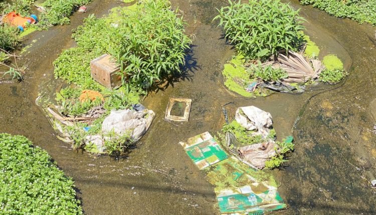 En la zona se puede apreciar basura, principalmente cartón, plástico, juguetes, ramas de palmeras que fueron tiradas por algunos ciudadanos y la crecida de maleza que hará que sea casi imposible el flujo de agua en próxima temporada de lluvias.