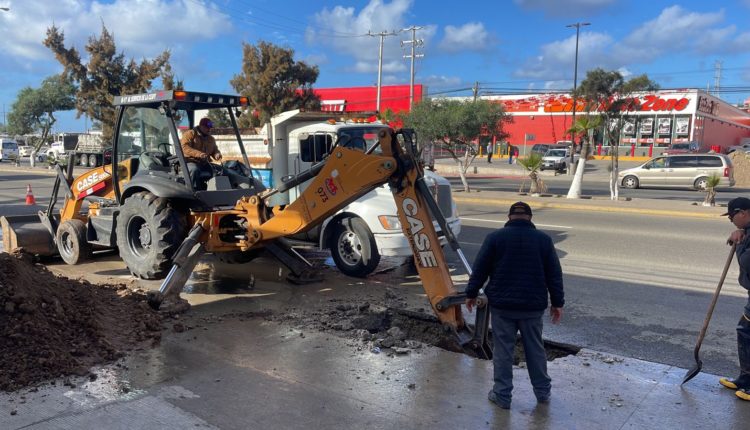 Playas de Rosarito, 3 de noviembre de 2022.- Este día personal de la Comisión Estatal de Servicios Públicos de Tijuana (CESPT) atendió en coordinación con TELNOR una fuga de agua potable que se detectó en una toma localizada en el bulevar Benito Juárez de Playas de Rosarito.