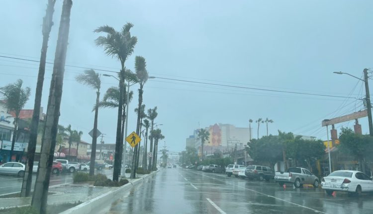 Playas de Rosarito B.C, 8 noviembre 2022.- Hasta el momento no se han registrado incidentes mayores debido a la lluvia que se presenta en la región, la cual viene acompañada de fuertes ráfagas de viento de sur a norte.