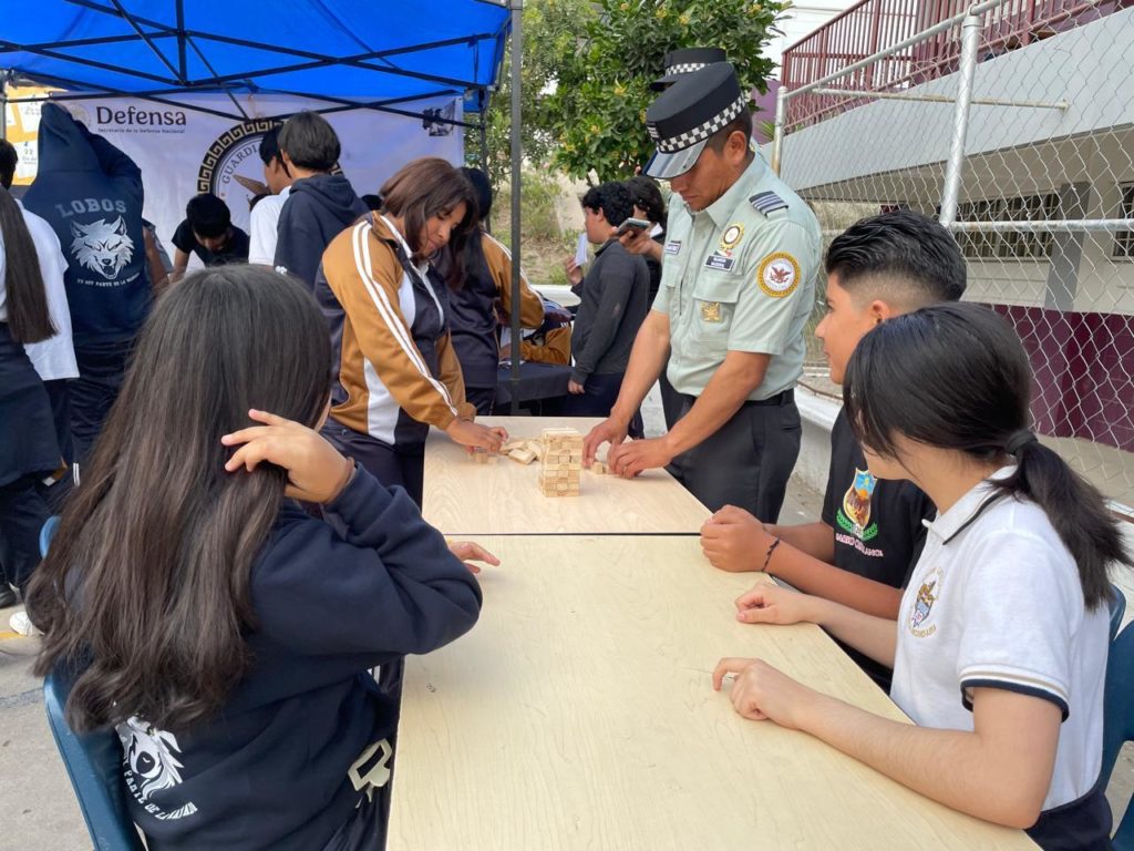 Además, se instaló el módulo de proximidad social, equipo táctico, equipo de vocería y el equipo de proximidad de la Guardia Nacional, exhibición fotográfica de la Guardia Nacional, los agentes de la Guardia Nacional instruyeron, compartieron y convivieron con los estudiantes, personal administrativo y docente.