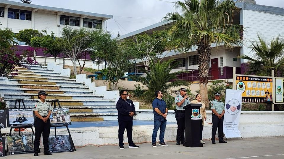 Baja California, 06 de Noviembre del 2025 – La Coordinación Estatal de la Guardia Nacional en Baja California comandada por el General de Brigada GN. E.M Héctor Jiménez Báez y la Fundación Manos Unidas por Rosarito A.C., y Unidos por la Prevención en Baja California, presidida por CPMI Lorena Meléndez Yáñez, aleccionan a los adolescentes de BC sobre la Extorsión Cibernética”. Para prevenir que sean víctimas de la extorsión y secuestro exprés.