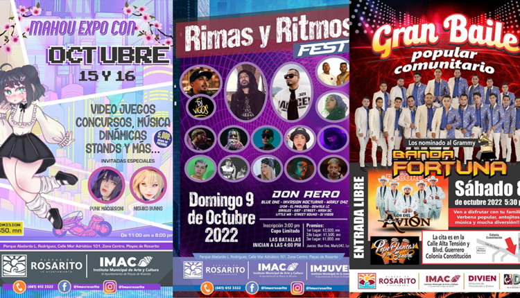 Playas de Rosarito, 3 de octubre de 2022.- Se dio a conocer el calendario de actividades del Instituto Municipal de Arte y Cultura (IMAC), donde se destaca la realización del “Gran Baile Popular Comunitario” el próximo sábado 8 en la colonia Constitución, donde amenizará la “Banda Fortuna”, artistas recientemente nominados a los Premios Grammy 2022.
