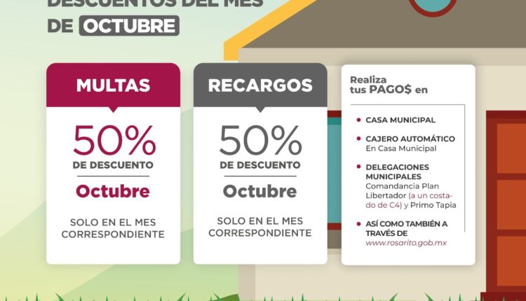 Playas de Rosarito, 4 de octubre de 2022.- El Gobierno de Playas de Rosarito, invita a los contribuyentes a aprovechar los descuentos que estarán vigentes durante octubre de 2022 en el pago del impuesto predial.