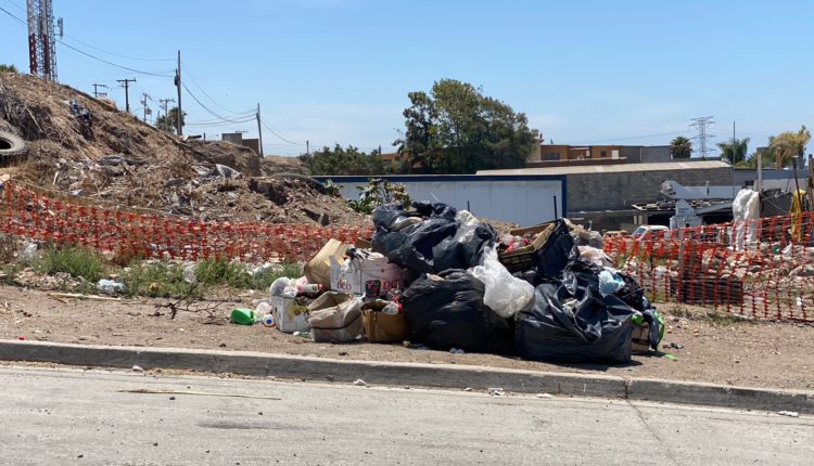 Playas de Rosarito, 19 de julio de 2022.- Vecinos de la calle Herminio Arroyo de la colonia Lucio Blanco se dicen molestos porque constantemente ciudadanos de la zona han utilizado la banqueta como basurero clandestino, aunque constantemente pasa y se llevan la basura, no saben de donde los vecinos vuelven a sacar más.