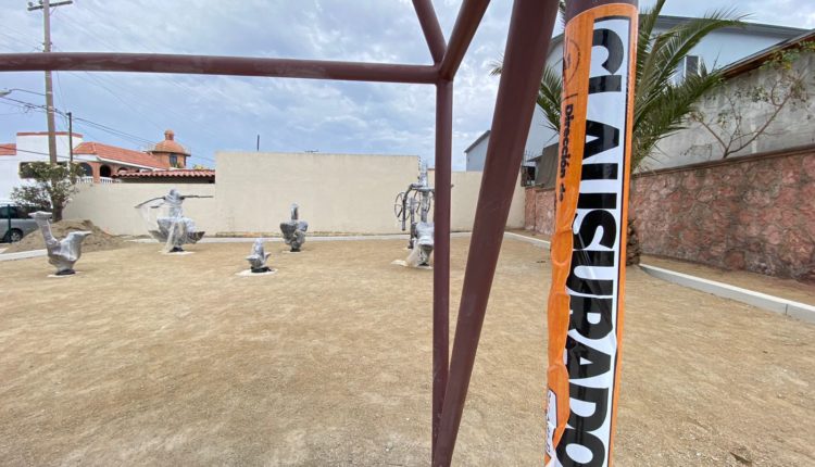 Playas de Rosarito, 15 agosto 2022.- La dirección de Desarrollo y Servicios Urbanos clausuró un parque sobre la calle Vía a las Playas de la colonia La Fuente, ya que dicha obra no contaba con permisos municipal.