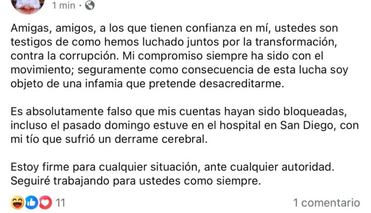 En un post en sus redes sociales, la ex presidenta municipal dijo que siempre ha luchado por el movimiento y contra la corrupción. Por ello, no descarto que su lucha política sea la causa de esta campaña de desprestigio.