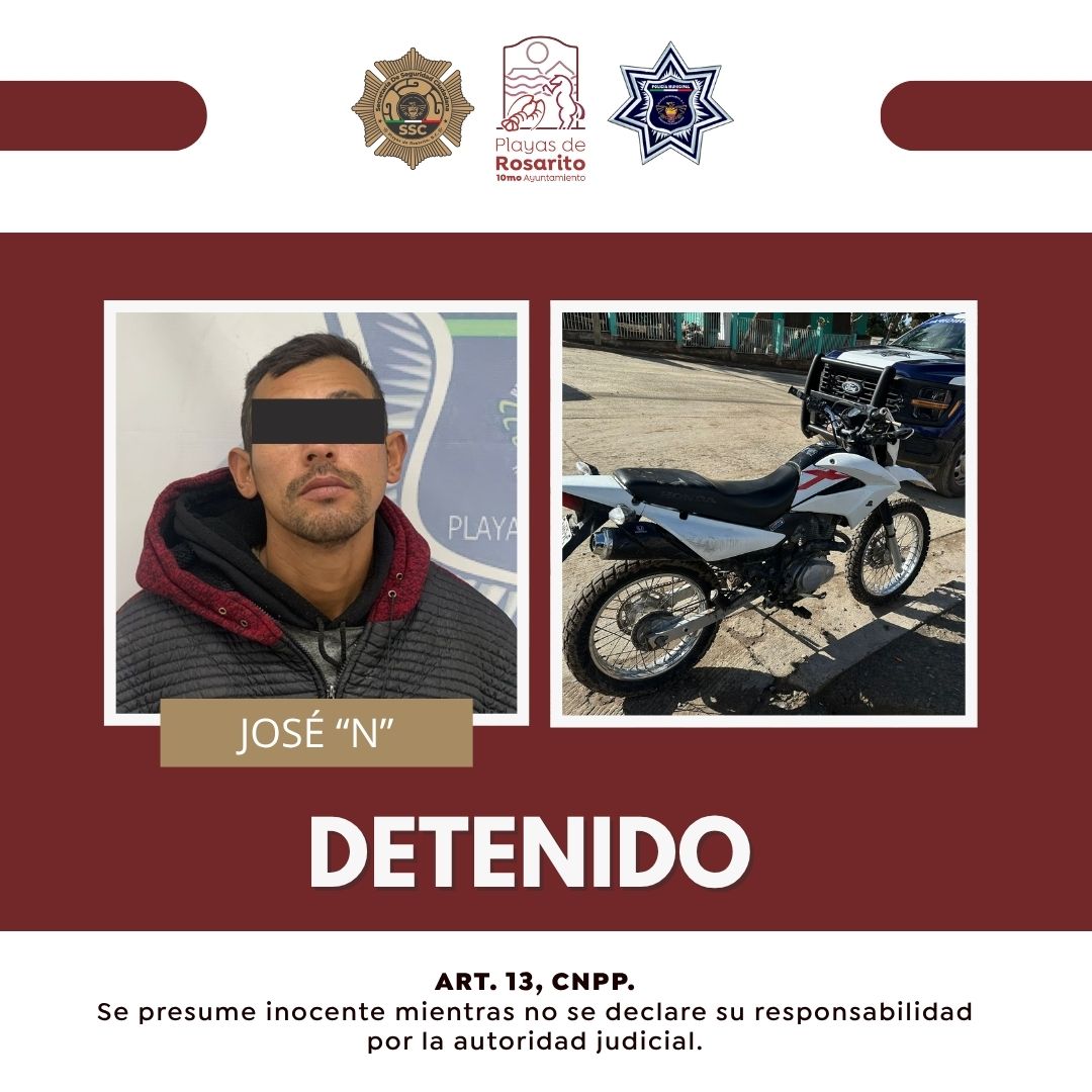 Ante estos hechos, se procedió a la detención del conductor José “N” y al aseguramiento de la motocicleta, quedando ambos a disposición de las autoridades correspondientes para su seguimiento legal.