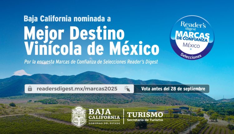 Playas de Rosarito, B.C.- La Secretaria de Turismo de Baja California, Zaida Luz López, dio a conocer que la entidad se encuentra nominada en la encuesta “Marcas de Confianza 2025” de la revista Selecciones Reader’s Digest en la categoría “Turismo Vinícola”.