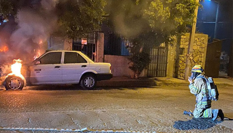 Playas de Rosarito, 18 agosto 2022.- Durante la madrugada de hoy jueves se reportó al 911 un vehículo incendiándose sobre la calle Distrito Federal de la colonia Constitución.